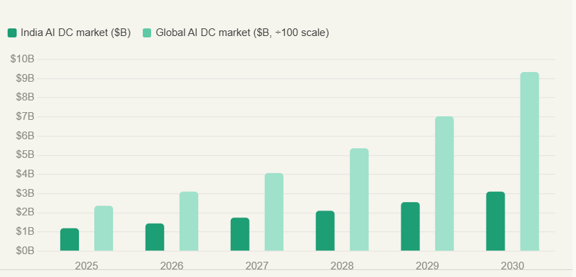 The global AI datacenter market was valued at $236 billion in 2025 and is projected to reach $933 billion by 2030, growing at a CAGR of 31.6%. India’s share of that is expected to grow from $1.19 billion to $3.1 billion in the same window. The infrastructure race has started. Most existing colocation providers are not positioned to run it.