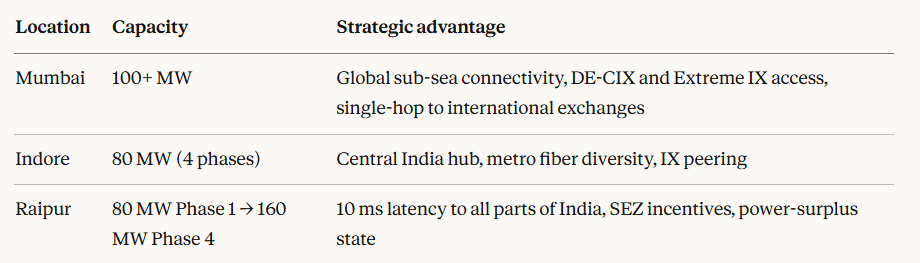 No other Indian datacenter operator has built this kind of distributed, AI-specific, high-density corridor across Central and Western India simultaneously.